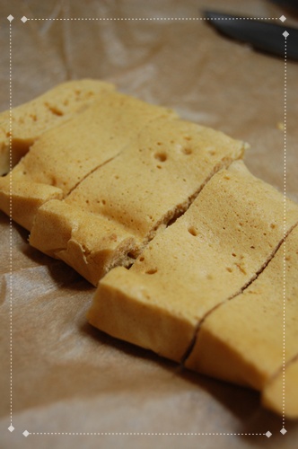 クッキングシートを敷いた細長い型に入れてみた結果↓↓